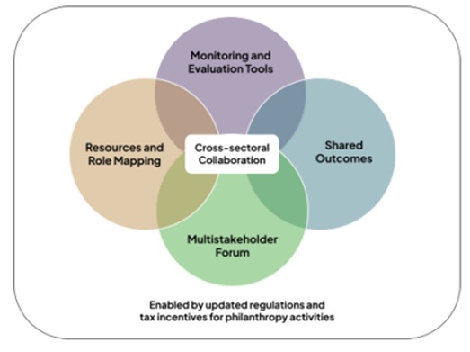 Ghina menyarakankan mekanisme yang dapat digunakan Indonesia untuk memastikan bahwa filantropi terintegrasi dengan baik ke dalam prioritas kesehatan nasional. Ini meliputi: (1) Pemetaan sumber daya dan peran untuk mendokumentasikan aktor kunci di seluruh ekosistem pendanaan seperti, siapa yang memegang sumber daya keuangan, siapa yang membutuhkan pendanaan, aktor mana yang telah menerapkan program serupa, siapa penerima manfaat, siapa yang berfungsi sebagai mitra pelaksana, di mana pendanaan paling dibutuhkan. Pendekatan ini membantu memastikan pendanaan yang ditargetkan dengan baik, mendorong intervensi yang lebih komprehensif, mengurangi fragmentasi program dan jangka pendek, dan dapat digunakan untuk mengidentifikasi kesenjangan untuk program masa depan atau terkait; (2) Alat pemantauan dan evaluasi yang terpadu, terintegrasi, dan dapat diakses diperlukan untuk menangkap dan mendokumentasikan dampak pendanaan filantropi. Alat-alat tersebut dapat berfungsi sebagai instrumen pembelajaran untuk mendukung skalabilitas dan keberlanjutan program, membantu menarik pendanaan di masa depan, dan memberikan bukti kepada banyak pemangku kepentingan tentang hasil kesehatan yang didukung oleh filantropi; (3) Hasil bersama, terutama yang selaras dengan prioritas nasional dan regional, harus berfungsi sebagai referensi utama bagi organisasi filantropi saat merancang program mereka. (4) Forum multipihak yang transparan dan bebas konflik diperlukan untuk secara teratur membahas mobilisasi sumber daya domestik untuk keuangan kesehatan yang selaras dengan prioritas nasional. Forum semacam itu juga akan membantu mencegah fragmentasi dan mendukung tujuan yang lebih luas untuk memperkuat kolaborasi lintas sektoral. Bersama-sama, upaya ini harus didukung dengan revisi undang-undang pengumpulan uang dan barang, dan insentif pajak yang komprehensif untuk filantropi lokal.