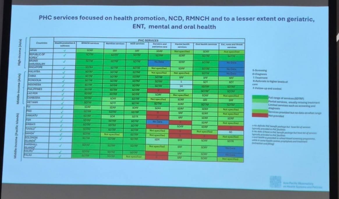 Perwakilan pemerintah Indonesia menguraikan Proyek Transformasi Sistem Kesehatan Indonesia, sebuah reformasi ambisius yang memajukan akses universal di lebih dari 300.000 pusat kesehatan primer yang didukung oleh investasi terfokus dalam peningkatan kapasitas tenaga kerja, perhatian pada manajemen penyakit tidak menular, dan strategi pembiayaan yang tangguh. Strategi reformasi ini dirancang untuk menutup kesenjangan geografis dan mempersiapkan sistem kesehatan untuk Masyarakat Indonesia yang akan mengalamai penuaan populasi yang cepat.