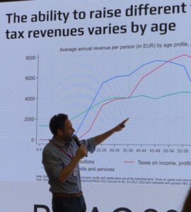 Andrew Reilly (OECD) membahas inovasi desain dalam sistem pensiun publik dan ekuitas antargenerasi. Perspektif OECD yag disampaikan adalah tentang bagaimana mempertahankan sistem pensiun di negara-negara berpenghasilan tinggi dan menengah, serta memperkenalkan alat untuk menilai kecukupan pensiun, cakupan, dan ketahanan fiskal